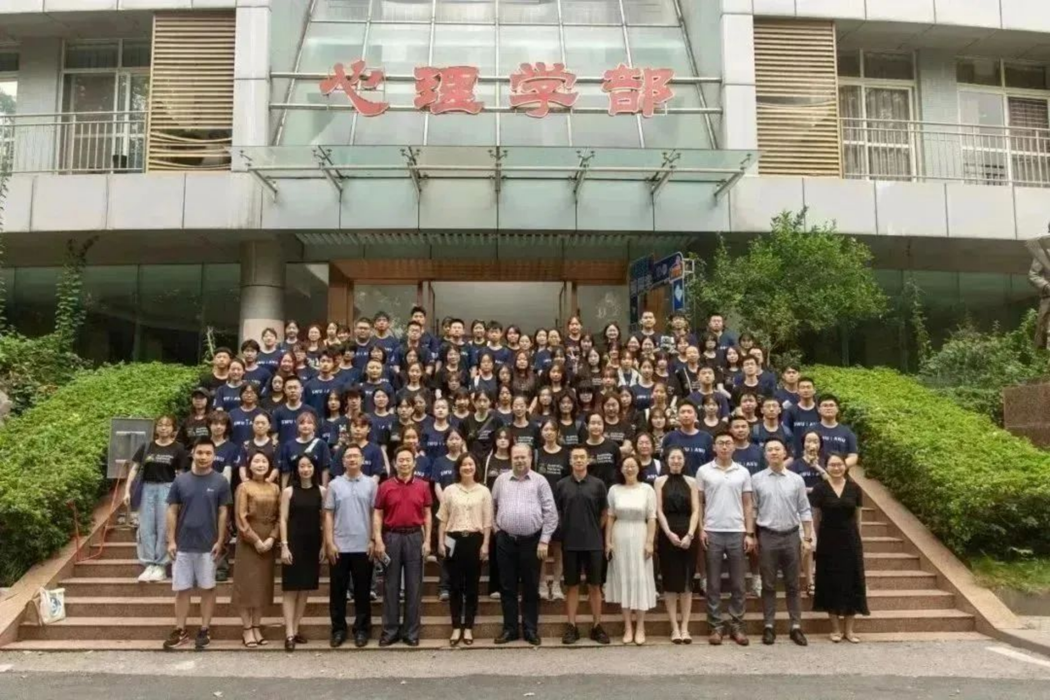 心理学中外合办项目2023级本科生新生见面会合影,一排左四为何清华