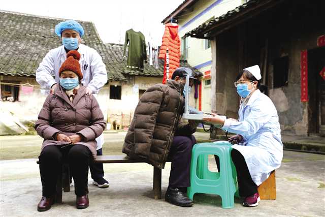 北碚区中医院志愿者为一线医护人员的父母检查身体健康状况