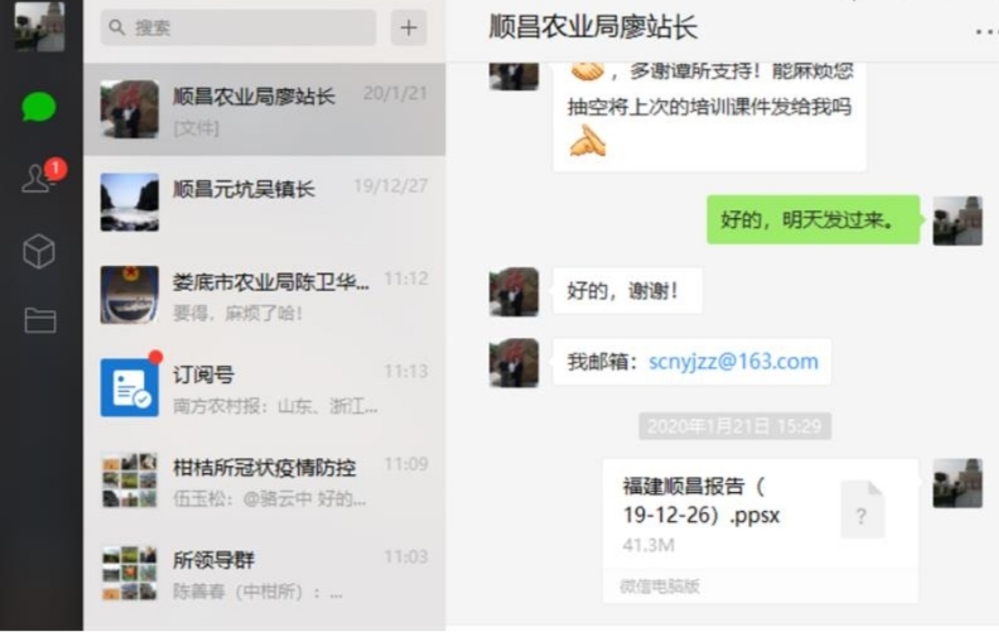 2月份以来,该所栽培与生理研究专家团队为异常柑桔果园提供远程技术诊断和矫治方案,彭良志研究员通过线上平台先后为广西柳州市柑桔品种更新提供了柑桔新品种信息和技术咨询建议,为重庆市奉节县和四川雷波县编制了《有机脐橙栽培技术规程》,以及相应的果园管理技术要求,并及时为奉节县提供脐橙市场动态信息,为疫情期间减少脐橙销售损失起了较好作用。彭良志研究员表示:“2、3月是果园管理种植的关键时期,我们研究所更要加紧工作,为示范基地、果农提供技术支持,千万不能因为疫情误了农时,这是最关键的。”