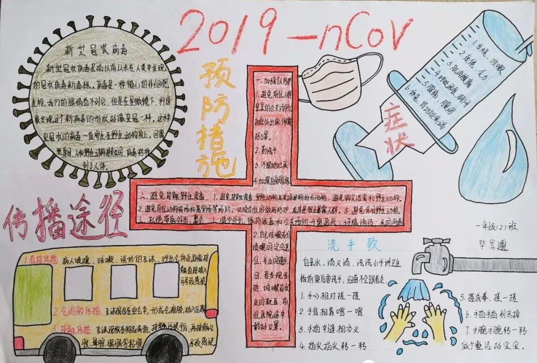 ●作品介绍:作者的美术刻画能力还不错,左下侧的中国地图画的比较准确,同时说明作者比较关注疫情防控的消息。作者从肺炎的起点(有待确定)—临床表现—预防措施,以及如何佩戴口罩等因素都阐述的很清楚。另外,”特殊碰肘礼“补充了防护措施,十分全面。