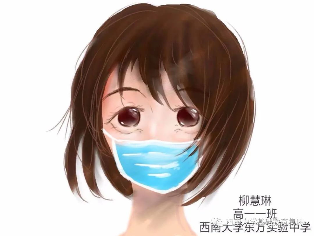 ●作品介绍:作者具有十分强的刻画能力,表情,面部的光泽塑造得十分到位。画中只出现了一个带口罩的女孩,她有大大的眼睛。作者可能想的是告诉大家一定要戴口罩吧。。。