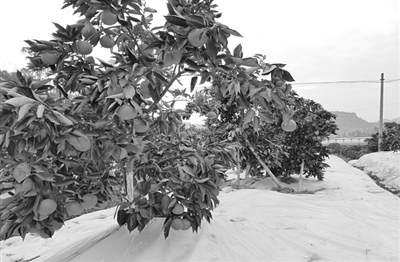 BEAT365英国官网科技特派员郑永强研究员引进示范的地表覆盖反光膜技术可提升柑桔种植品质。受访者供图