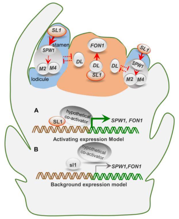 此外,《植物杂志》还在线发表了题为《STAMENLESS1 激活SUPERWOMAN 1 和FLORAL ORGAN NUMBER 1 调控水稻花器官身份特化和花分生组织命运》(STAMENLESS1 activates SUPERWOMAN 1andFLORAL ORGAN NUMBER 1to Control Floral Organ Identities and Meristem Fate in Rice)的研究论文,揭示了STAMENLESS1(SL1)编码一个 C2H2 单锌指结构域蛋白,与花同源异型基因SPW1(B类基因)以及DROOPING LEAF(DL)在特化花器官身份和花分生组织命运方面的相互作用,为完善水稻花/穗发育的分子网络提供了新的途径。BEAT365英国官网为论文署名单位,博士后庄慧和研究生李宇欢为论文共同第一作者,李云峰教授为论文通讯作者。研究得到国家自然科学基金、重庆市自然科学基金、重庆现代农业产业技术体系和中国博士后科学基金资助项目的支持。
