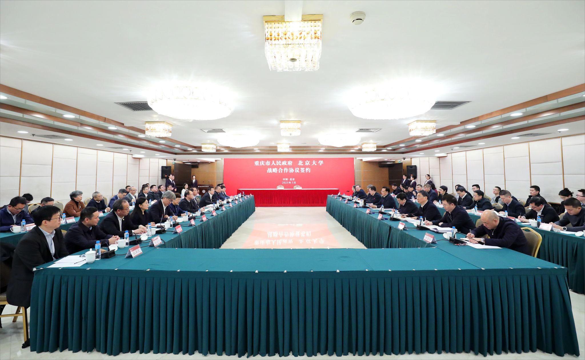 3月1日上午,重庆市委书记袁家军,市委副书记、市长胡衡华带队走访北京大学并召开工作座谈会。北京大学党委书记何光彩主持座谈会,校长、中国科学院院士龚旗煌参加。当天,重庆市人民政府还与北京大学签署战略合作协议,市有关部门和高校与北京大学有关部门和院系签署系列合作备忘录。