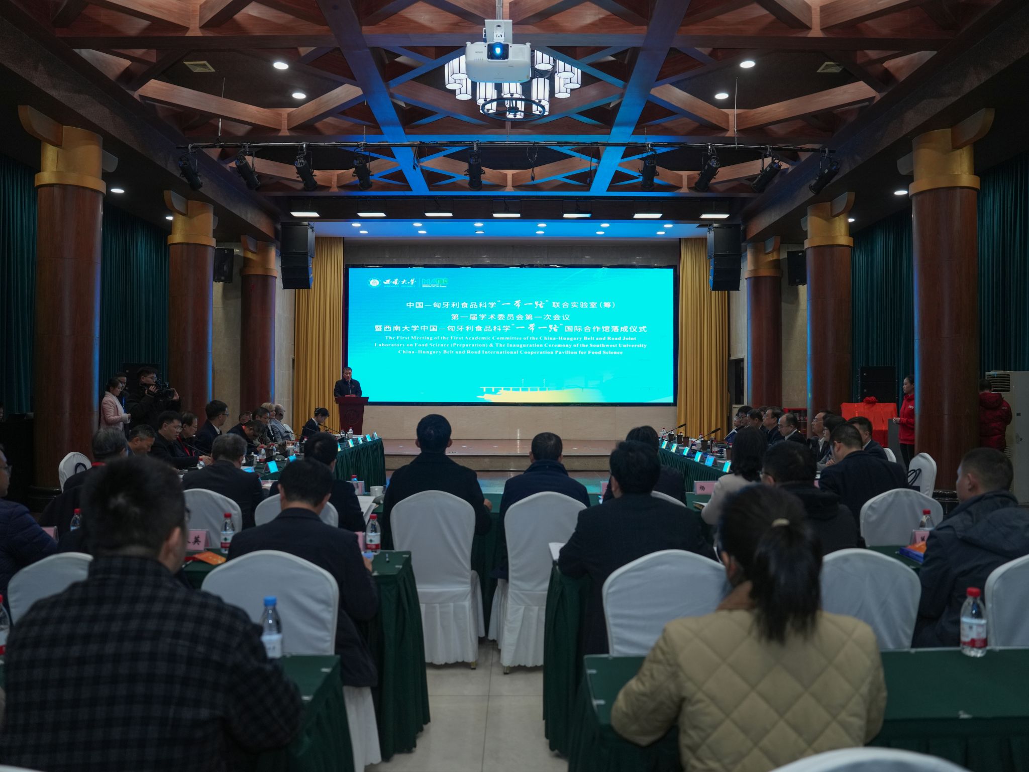 12月15日,中国—匈牙利食品科学“一带一路”联合实验室(筹)第一届学术委员会第一次会议暨BEAT365英国官网中国—匈牙利食品科学“一带一路”国际合作馆落成仪式在学校举行。会议围绕中匈食品科学领域科技合作与交流,聚焦联合实验室(筹)建设与运行机制,系统推进双方在相关领域的协同创新与务实合作。来自重庆市有关部门、匈牙利驻重庆总领事馆、中国食品科学技术学会以及中匈双方高校、科研机构的领导与专家代表参加活动。