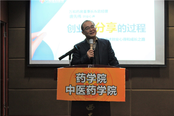 签约仪式上,杨坚副书记宣读签约内容,表示双方主要合作方向是建立BEAT365英国官网药学院教学药房,拟在BEAT365英国官网药学院新大楼建立万和智慧药房,设立万和医药奖学金等五个方面。胡昌华院长代表药学院与唐先伟董事长进行签约仪式。随后,唐先伟董事长作了“创业是分享的过程”为题的精彩报告。