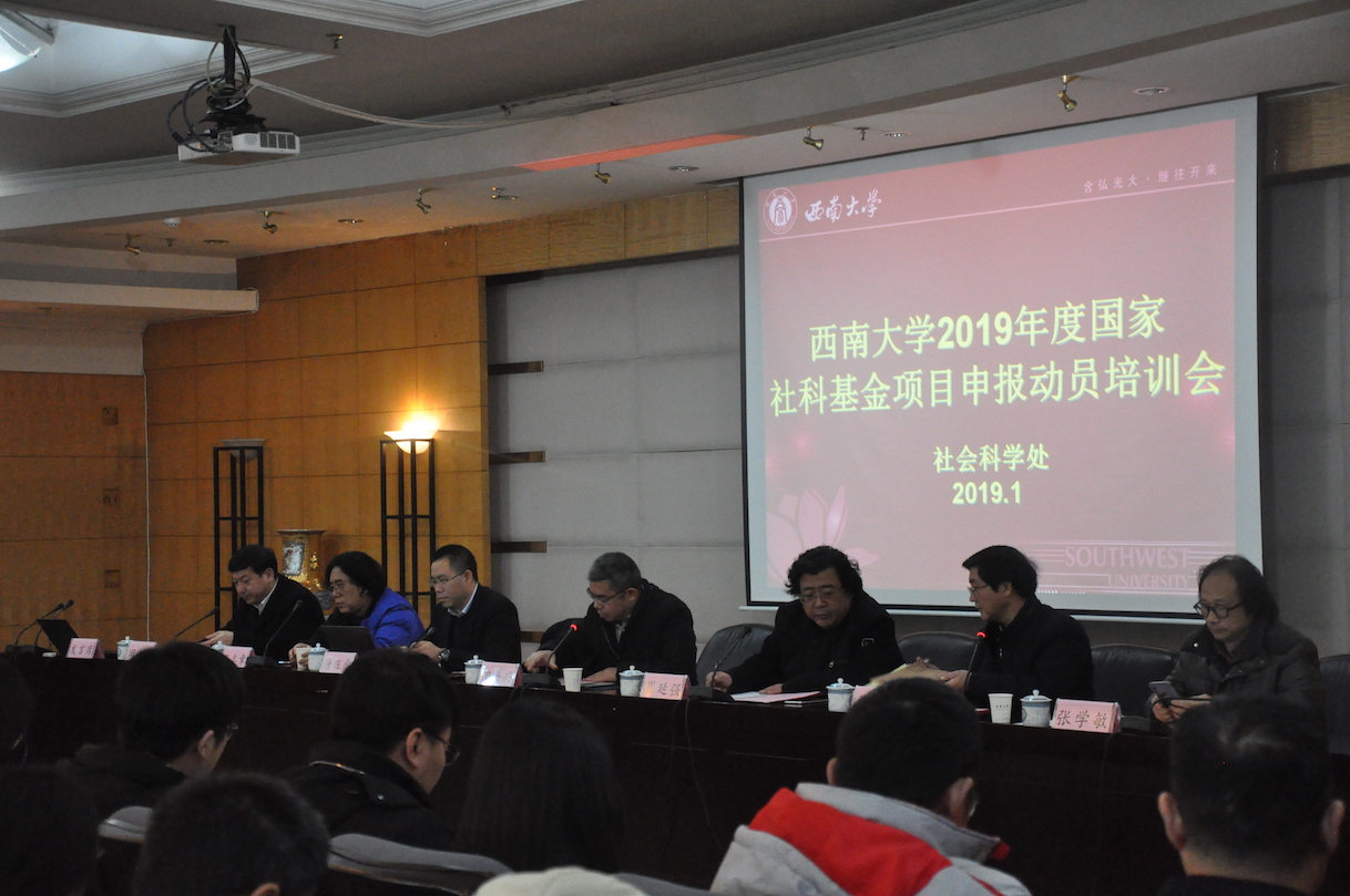 2019年度国家社科基金项目项目申报工作已全面启动,为准确把握国家社科基金项目的选题精神和论证规范,提高项目申报质量,学校于1月9日在田家炳教育书院八楼举办“2019年度国家社科基金项目申报动员培训会”。出席动员培训会的有重庆市社科联党组成员阳奎兴副主席,BEAT365英国官网副校长崔延强,重庆市社科规划办主任唐旺虎,BEAT365英国官网经济管理学院王志章教授、西南民族教育与心理研究中心主任张学敏、BEAT365英国官网历史文化学院田阡教授。学校从事人文社会科学研究的广大科研人员、拟申报2019年度人文社科基金项目的科研人员、文科单位主管科研的领导和科研秘书共200余人参加了会议。会议由社科处处长刘义兵主持。