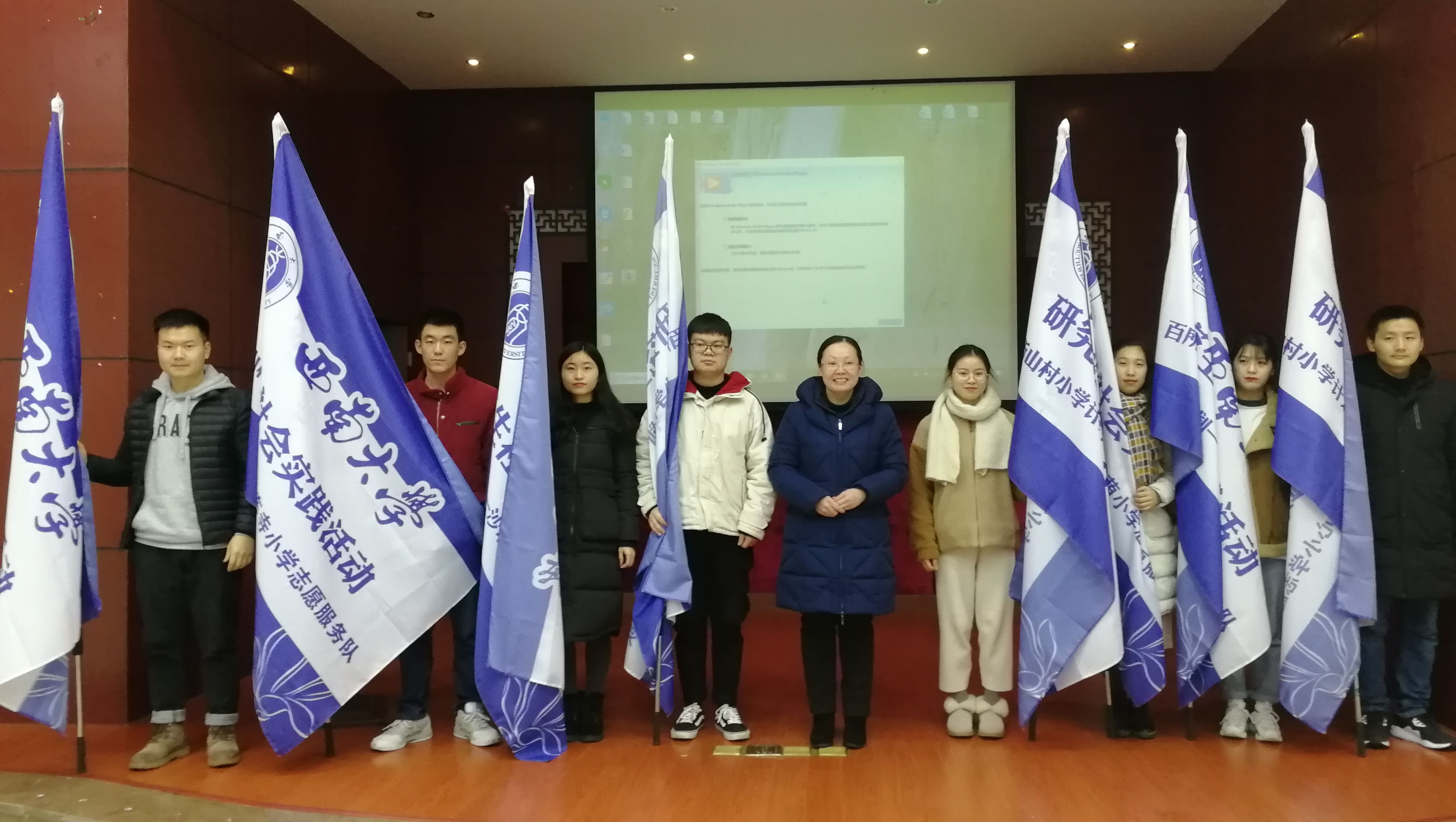 1月9日下午,学校2019年寒假研究生社会实践活动启动仪式在八一礼堂举行。党委研究生工作部相关老师、各校级实践团队指导教师、校研究生会主席团成员、社会实践部工作人员、26支“百所山村小学计划”志愿服务活动校级实践团队代表参加启动仪式。仪式由校研究生会副主席王菁菁同学主持。