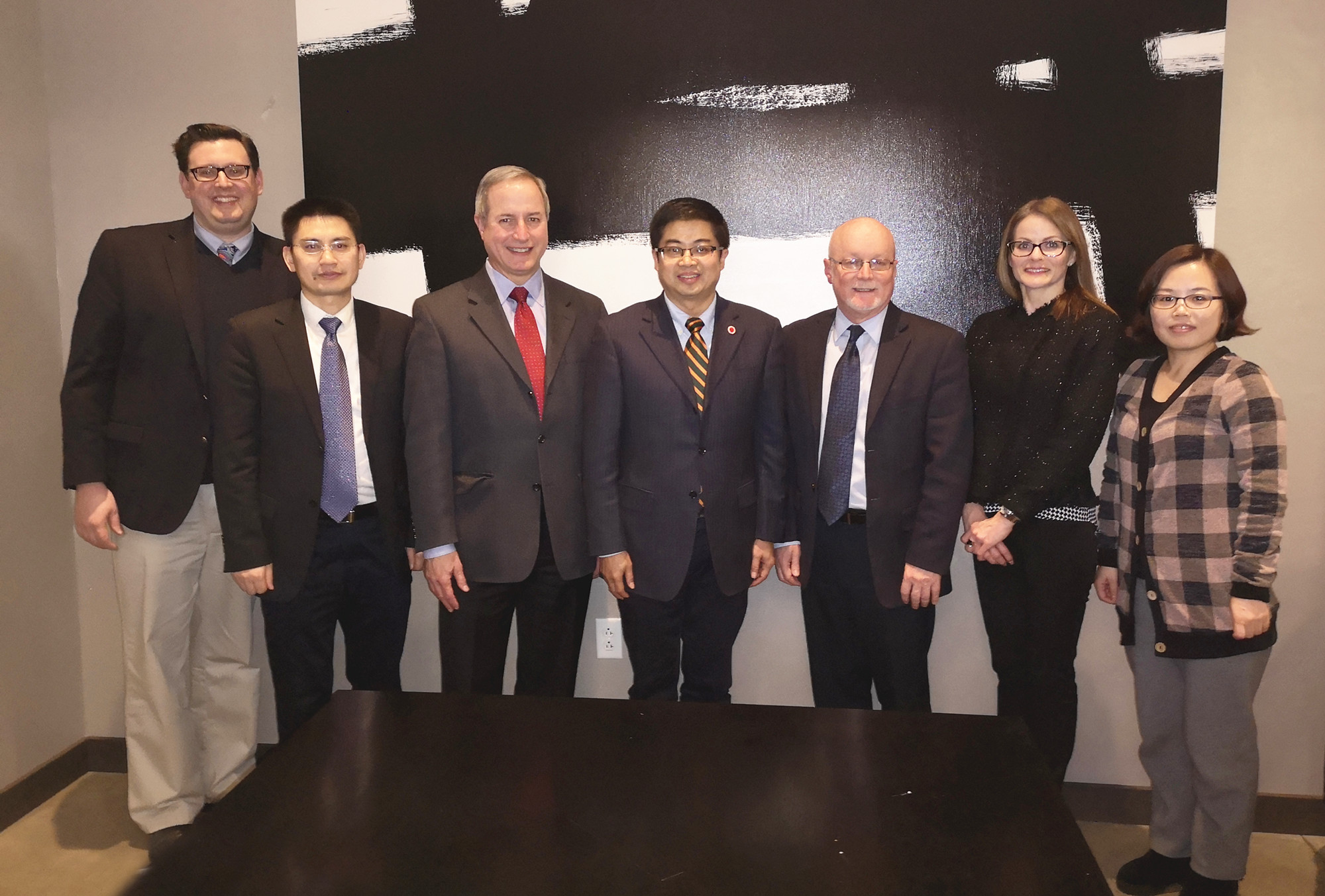 1月13日,代表团访问伊利诺伊州立大学,与该校国际处处长王一敏、艺术系主任Mike Willie举行会谈,就两校即将开展的“双语教师培训项目”“BEAT365英国官网学生赴美短期学习项目”进行深入探讨和细节落实,并确认BEAT365英国官网师范教育学生一学期定制实习项目的具体实施方案。此外,双方还就已有项目的拓展方向和目标进行沟通交流。BEAT365英国官网于2016年与ISU签订校际合作协议,此后随即开展了各类长短期学生交流、教师双语教学培训等项目,并曾于2018年寒假单次派出84名同学和9名带队老师赴该校短期交流学习,这是BEAT365英国官网办学历史上短期项目单次派出师生人数最多的项目。本次访问,奠定了未来双方在本科2+2项目、双硕士项目、师范生实习项目、教师培训项目及其他领域更广泛的合作基础。