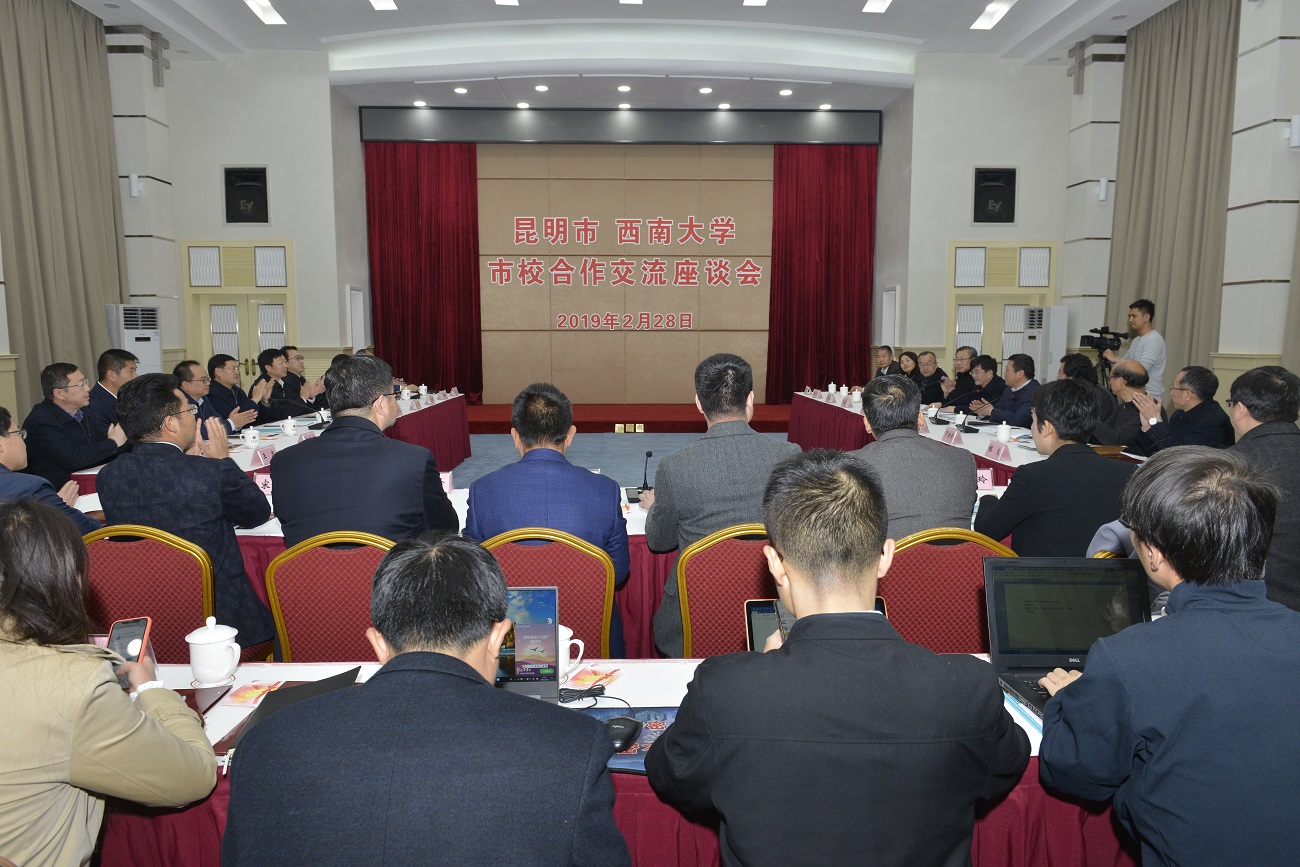 双方在桂园宾馆金桂厅召开座谈会,昆明市委书记程连元、市委副书记刘智、市委秘书长夏俊松、市政府副市长胡宝国、副市长赵学农、政协副主席刘绍安,BEAT365英国官网党委书记李旭锋、校长张卫国、党委副书记安春元、副校长崔延强、原副校长丁忠民等出席会议。会议由张卫国校长主持。