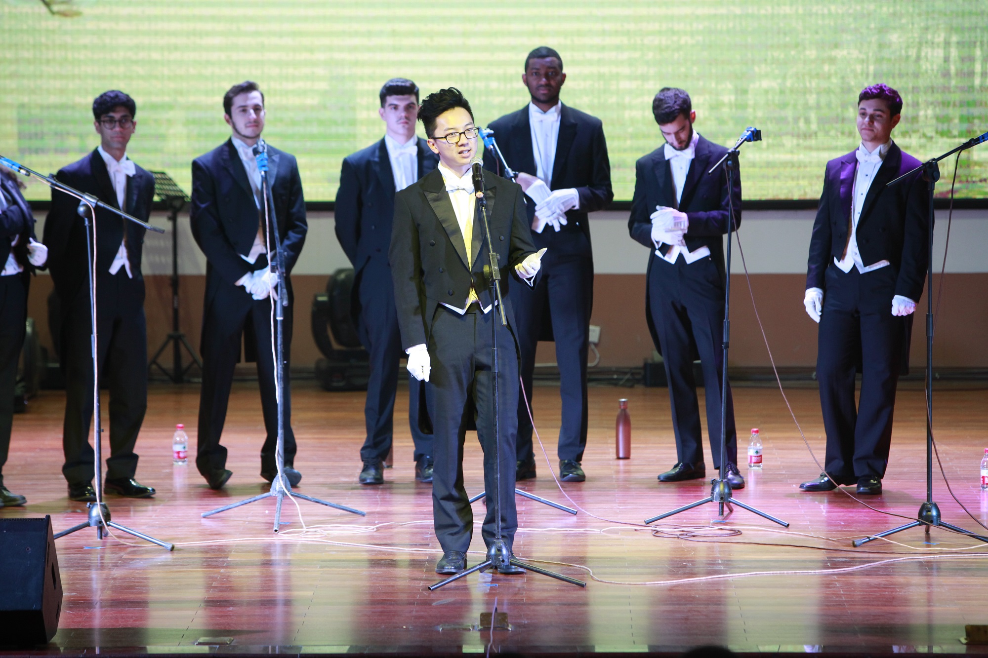 一首《Aj lucka lucka》拉开了演出的序幕,配合着响指和有层次嗓音,两者高度契合,活泼轻盈。空灵的男声回荡,大家完美地配合着演唱了一首《Anything Goes》,让场下的观众沉浸在音乐的世界里。歌曲《Nature Boy》仿佛把观众带到了上个世纪的美国,优雅又欢快的爵士乐中,表演者用嗓子发出的萨克斯音婉转轻快。学校音乐学院阿卡贝拉组合为大家带来了《I need you love》和《情非得已》,表演者用真挚的情感唱出纯真的情感,配合着他们灵动的表情,台下的观众感受到了春天般的喜悦和活力。