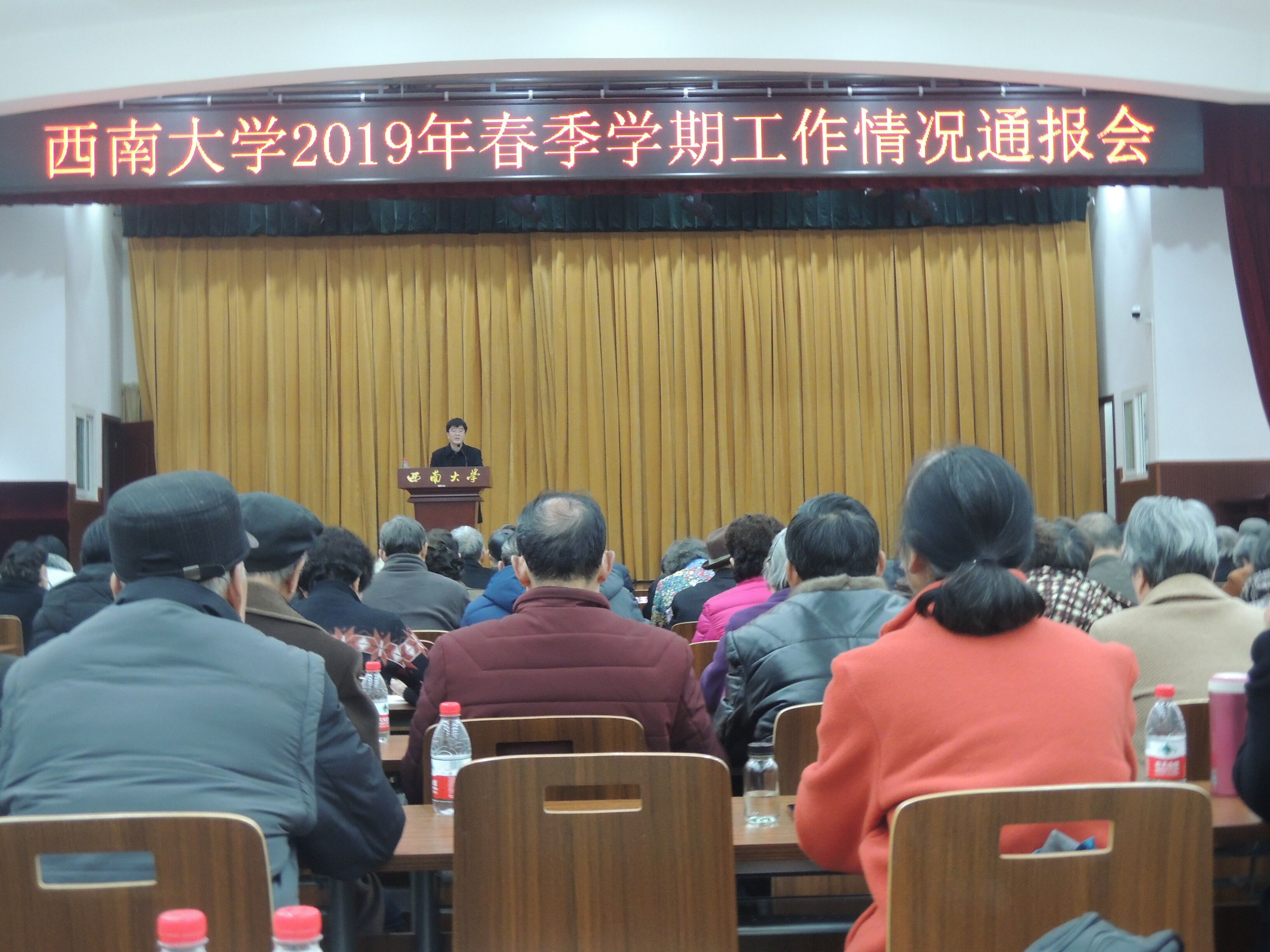 3月14日下午,学校召开会议,向离退休教职工代表通报2019年学校主要工作。学校党委书记李旭锋、党委副书记安春元出席会议。有关职能部门负责人和离退休教职工代表近200人到会。会议由安春元副书记主持。