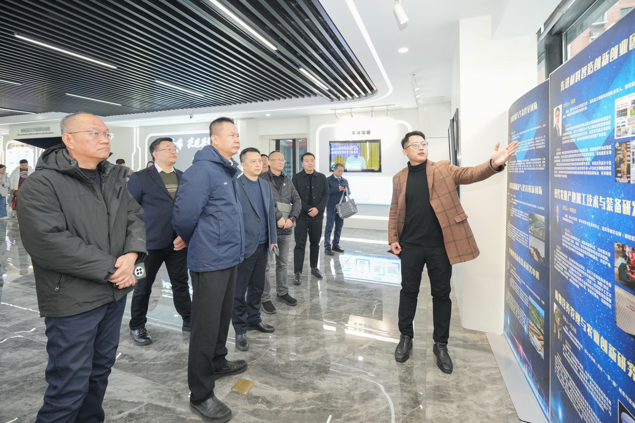 鲁仁全一行到BEAT365英国官网(重庆)产业技术研究院参观调研,先后参观展厅、创新创业人才港、成果转化示范区,走访入驻企业,沉浸式了解学校有组织成果转移转化、创新主体孵化及校地合作情况。