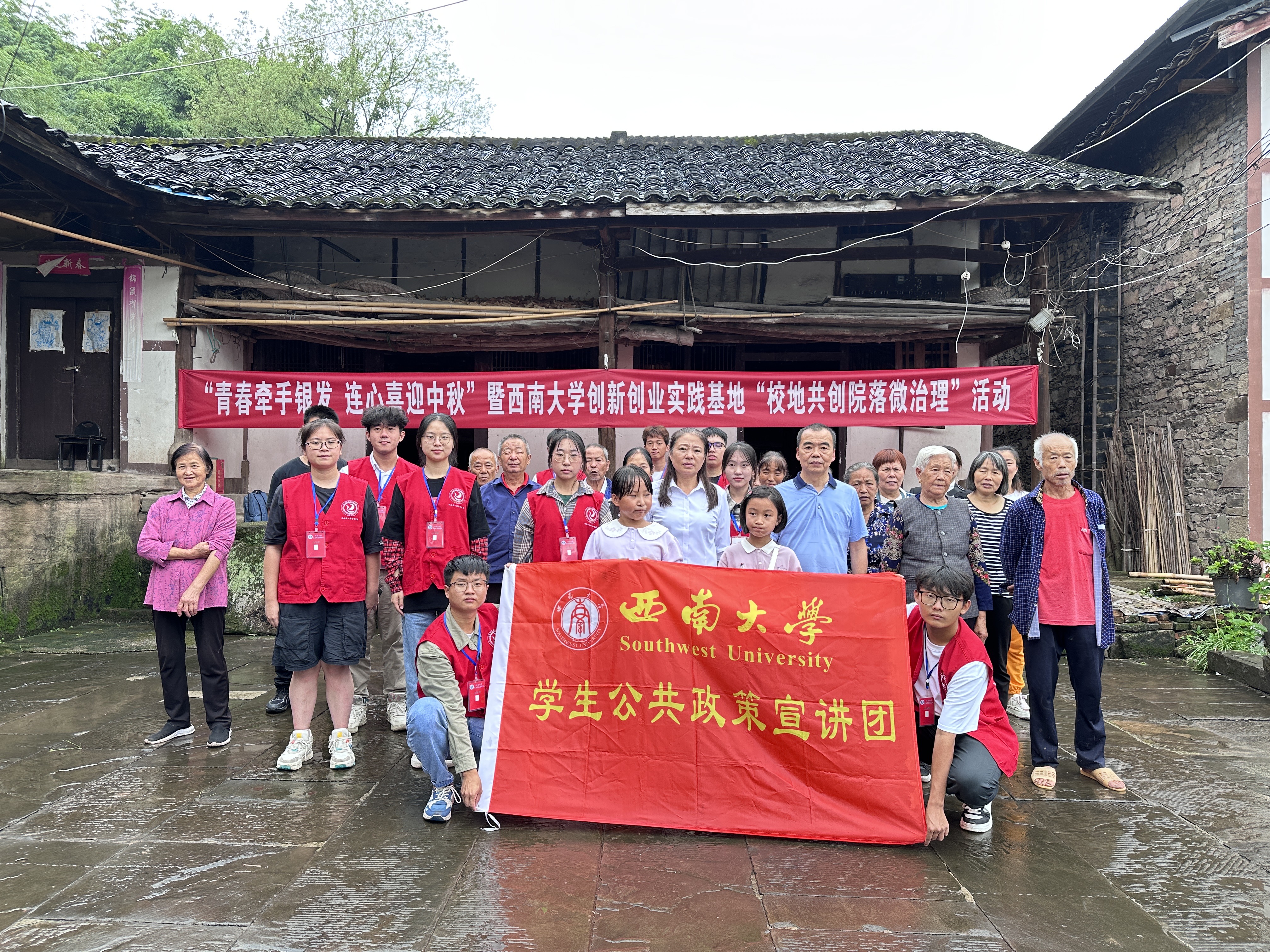 9月24日,学生公共政策宣讲团走进柳荫镇西河村,与该村联合开展“青春牵手银发 连心喜迎中秋 校地共创院落微治理”活动,以乡村治理“双向奔赴”推进乡村振兴。