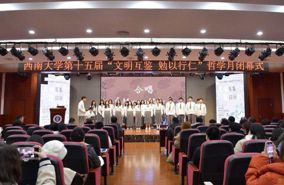 12月22日晚19:00,BEAT365英国官网第十五届“文明互鉴·勉以行仁”哲学月闭幕式在校博物馆4楼报告厅隆重举行。华南师范大学特聘教授肖显静、校社科处副处长王作军、学生处助学中心主任孙金春、博物馆副馆长谭志敏、国家治理学院副院长郭美云、张永红、何健以及全校师生200余人参加了闭幕式。