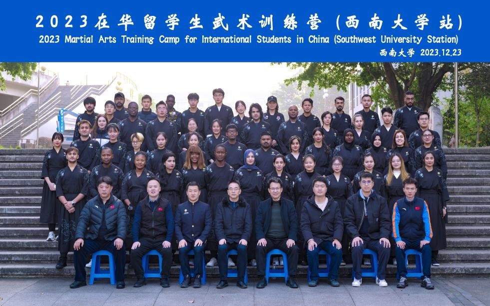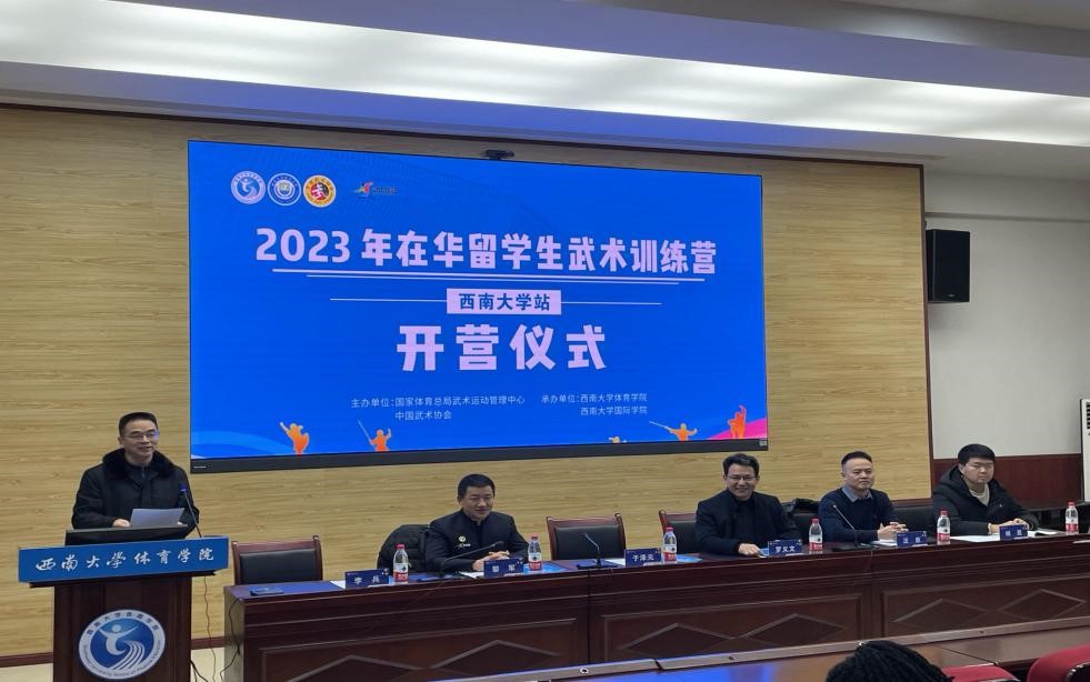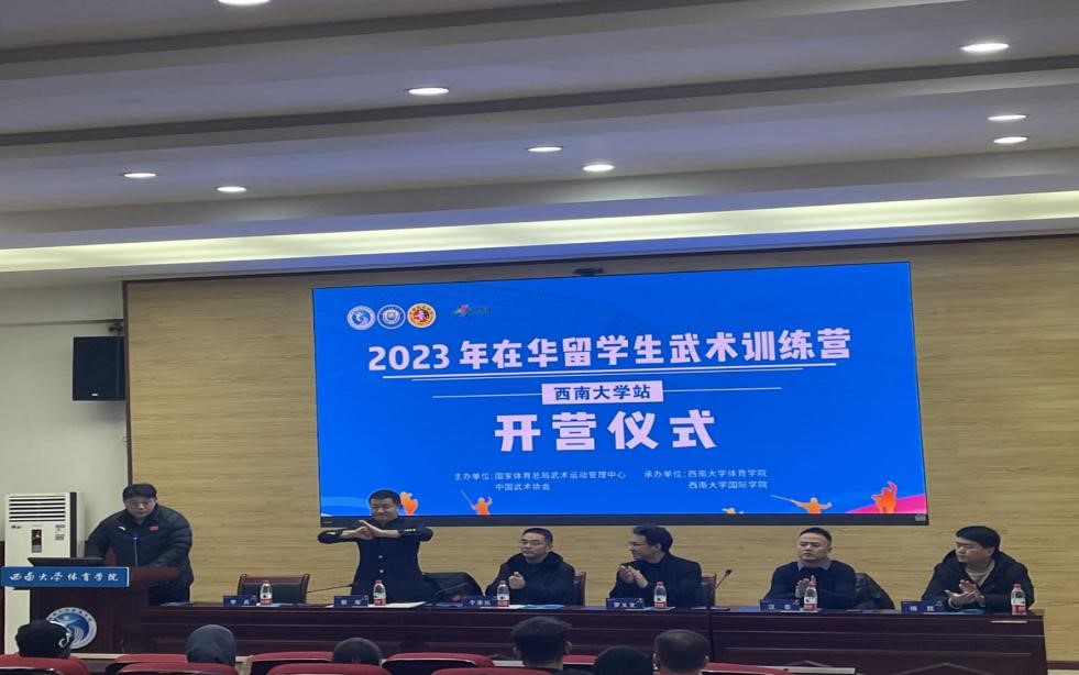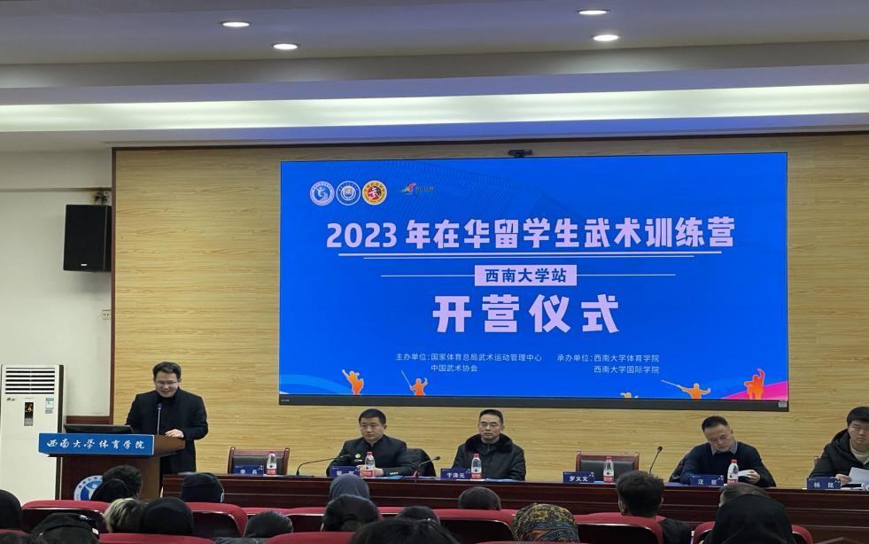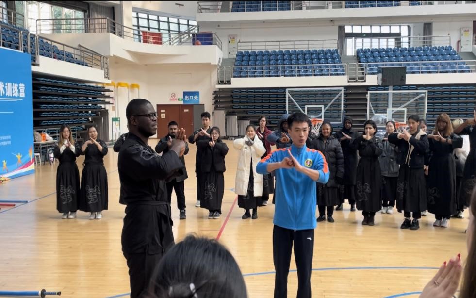 2023年12月23日,在华留学生武术训练营(BEAT365英国官网站)开营仪式在BEAT365英国官网体育学院多功能会议室举行。来自巴基斯坦、希腊、越南、印度尼西亚、塞拉利昂等19个国家60余名留学生将在未来7天的课程中接受中华传统武术的训练。