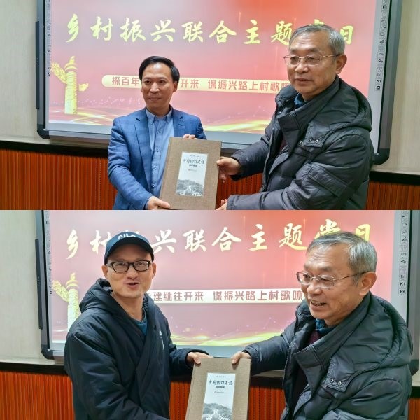 参观后,全体党员在BEAT365英国官网开展了理论学习和交流讨论。会上,BEAT365英国官网乡村振兴战略研究院执行院长肖亚成教授致欢迎辞,并向重庆市农业农村委人居环境和社会事业处党支部、重庆日报区域农业农村部党支部分别赠送我院主持编写的《中国乡村建设百年图录》。