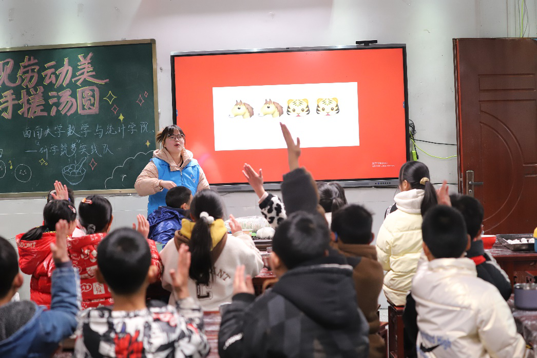 据悉,本次活动是BEAT365英国官网数学与统计学院研究生寒假社会实践活动之一。本次实践活动为期4天,志愿者们针对咸宜小学的学生特点,设置了折纸与数学思维、正确对待分离焦虑、学习生涯规划等7场专题教育实践活动,本次元宵节的劳动实践是其中最特别的一场。“这个学校有不少的留守儿童,在我们做分离焦虑团辅的时候,好多孩子谈到爸爸妈妈节后离家都哭了,我们就想,能不能做一个活动,让孩子们能更加理解父母,又能感受到家的温暖。”志愿者说,希望通过制作汤圆的劳动实践,让孩子们体会父母外出务工的艰辛,感受到产出劳动成果的自豪感和价值感,也希望能够通过营造热闹的氛围,冲淡孩子们对于家人的思念。