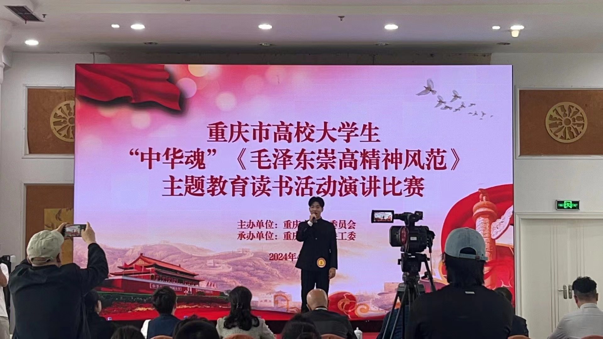 此次“中华魂”《毛泽东崇高精神风范》主题教育读书活动中,全市38所高校共推荐上报761篇征文、58名演讲选手参加重庆市教委组织的征文、演讲比赛。经过组委会组织专家认真评选,共评选出演讲比赛特等奖6名、一等奖11名、二等奖17名、三等奖23名;征文比赛特等奖38名、一等奖114名,二等奖228名、三等奖343名,优秀辅导员568名,优秀组织单位16个。学校获“特等”和“一等”等高级别奖项的人数和占比均位居全市高校首位。其中,方正政、陈科竹和嘎玛顿珠三位选手被推荐代表市教委参加重庆市关工委“中华魂”青年组的演讲和征文比赛。